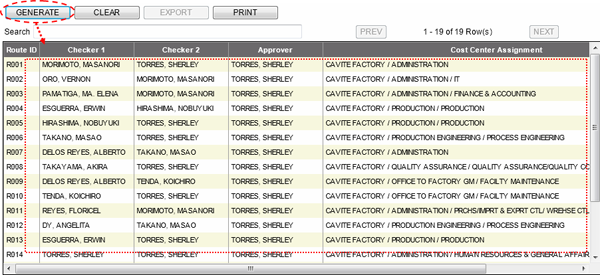 1.1 You can filter Route report by its Route ID, Costcenter, Checker 1, CHecker 2, Approver, Status.