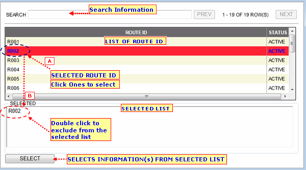 • You may use the "SELECT" button to to select Route ID(s) from the selected list.