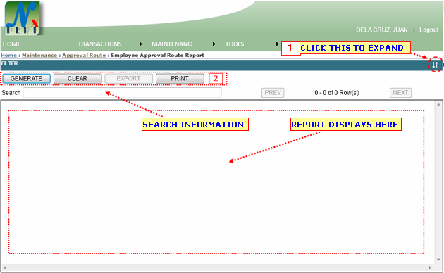 2. GENERATE button: CLick this button to display report.