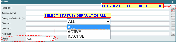 1.1 You can filter Route report by its Route ID, Transaction, Employee Costcenter, Checker 1, CHecker 2, Approver, Status.