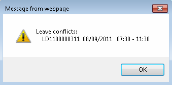 This message from WEB prompts when there is Leave conflicts and cannot be save. Please check your entry and try to save it again.