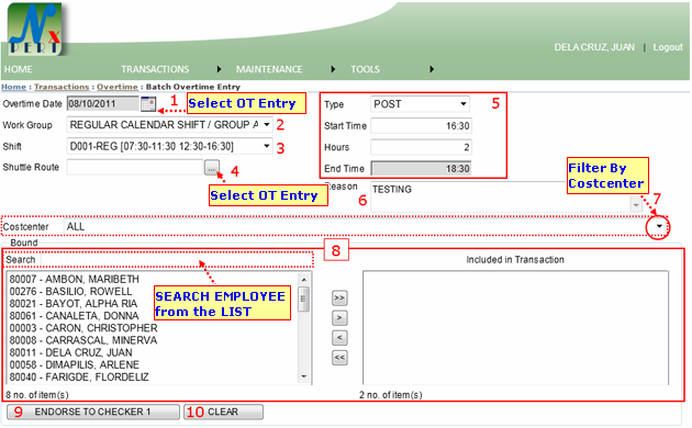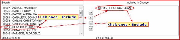 8. This is where you can select an employee to be included in transaction or exclude. You may follow this image below for the procedures: