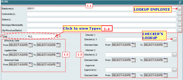 1.2 This is where you can filter Address/Contact by its Effectivity date, Applied, and Endorsed. To select Date, click into this icon