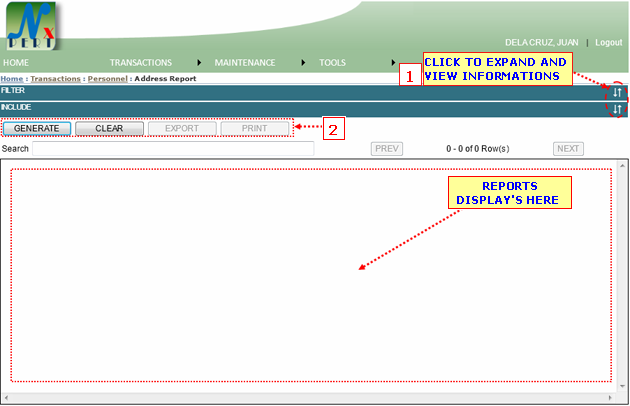 1.1 You can filter ADDRESS/CONTACT report by Employee, Costcenters, Barangay Municipality or City/Province/District..