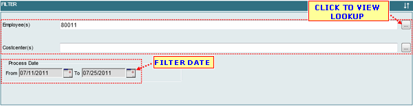 • From the costcenter list, select a row to be included in the selected list by clicking it ones.