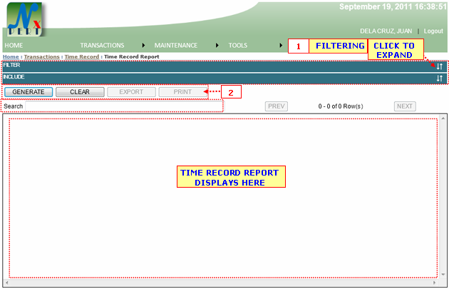 2. GENERATE button: A user may click this button to display result for report.