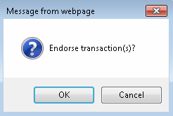 You may click OK if you wish to Endorse this Transaction or click CANCEL if not.