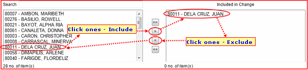 4. This is where you can select an employee to be included in transaction or exclude. Please follow this image below for the procedures: